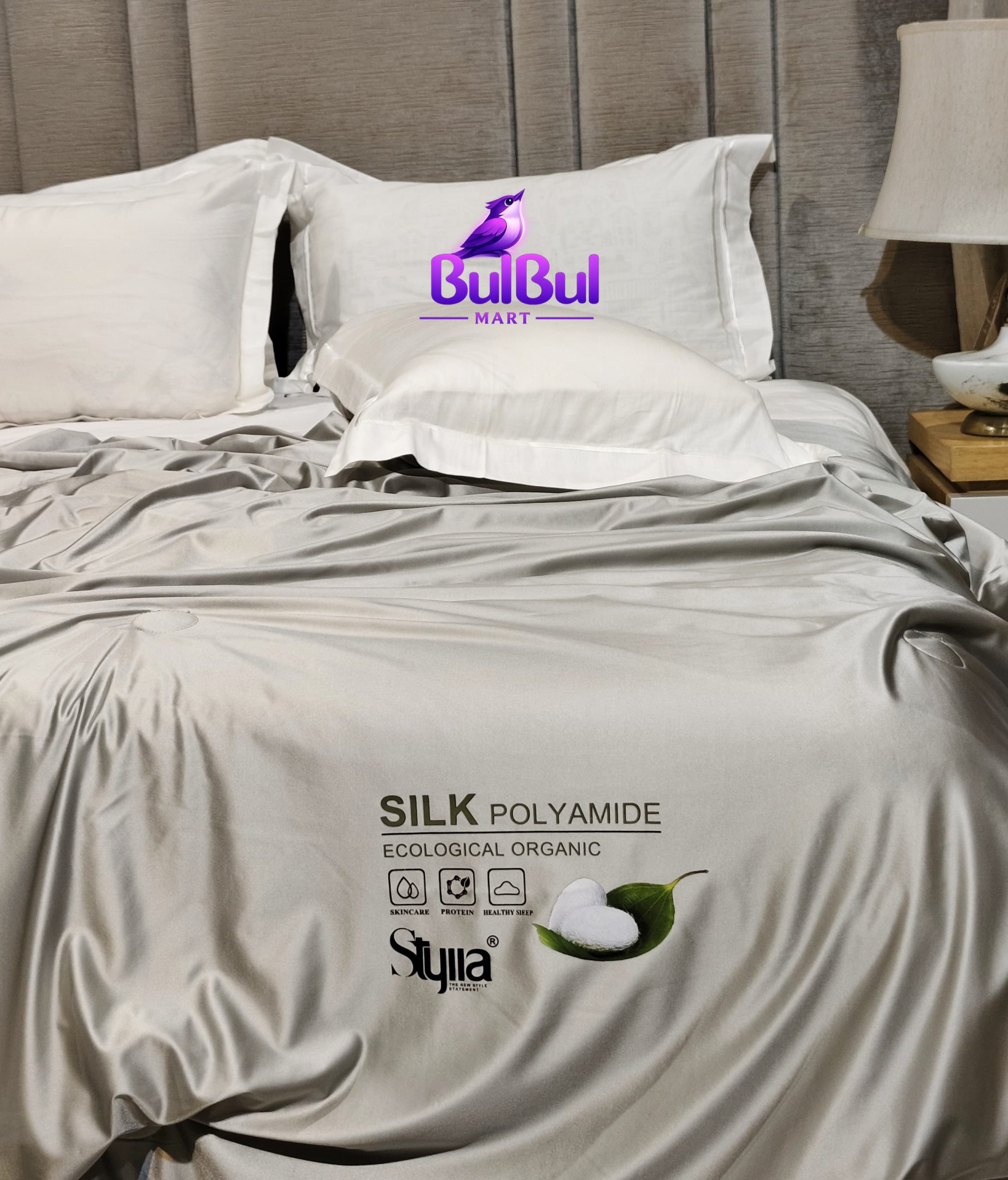 - Upgrade your sleep experience with this premium silk polyamide comforter, designed for ultimate comfort and elegance. Its smooth, skin-friendly fabric gives a luxurious feel while ensuring a cozy and restful sleep.
