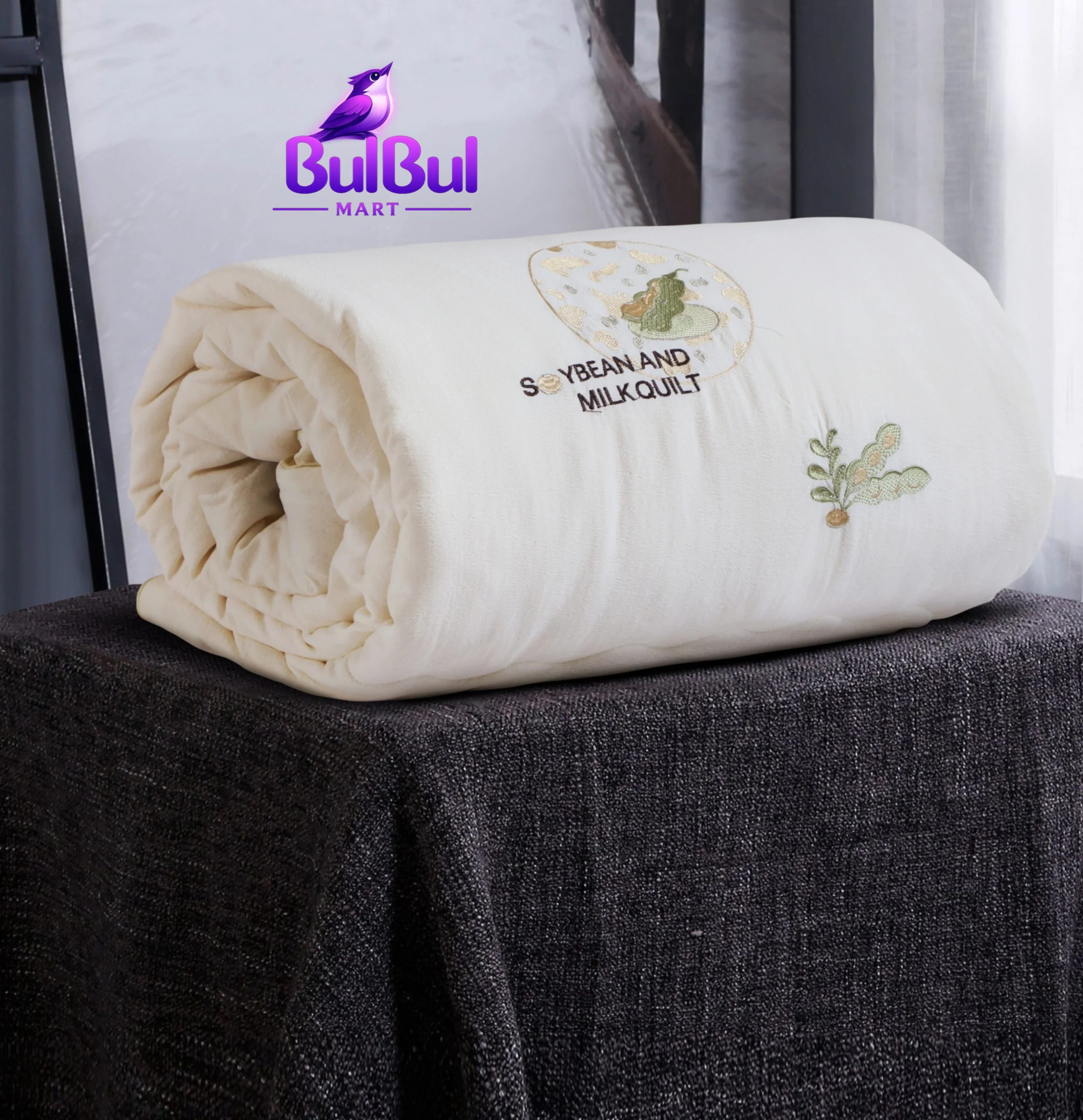 - A premium comforter made with natural soybean fiber and ultra-soft milky-feel cotton fabric, designed for perfect comfort and elegance.